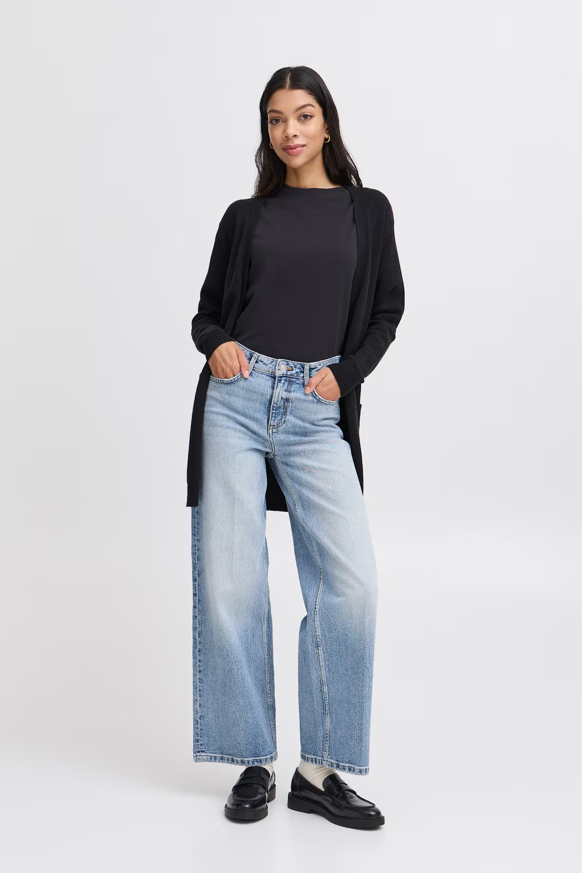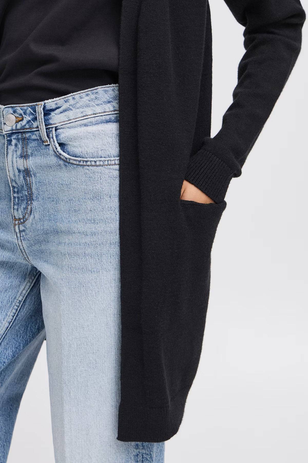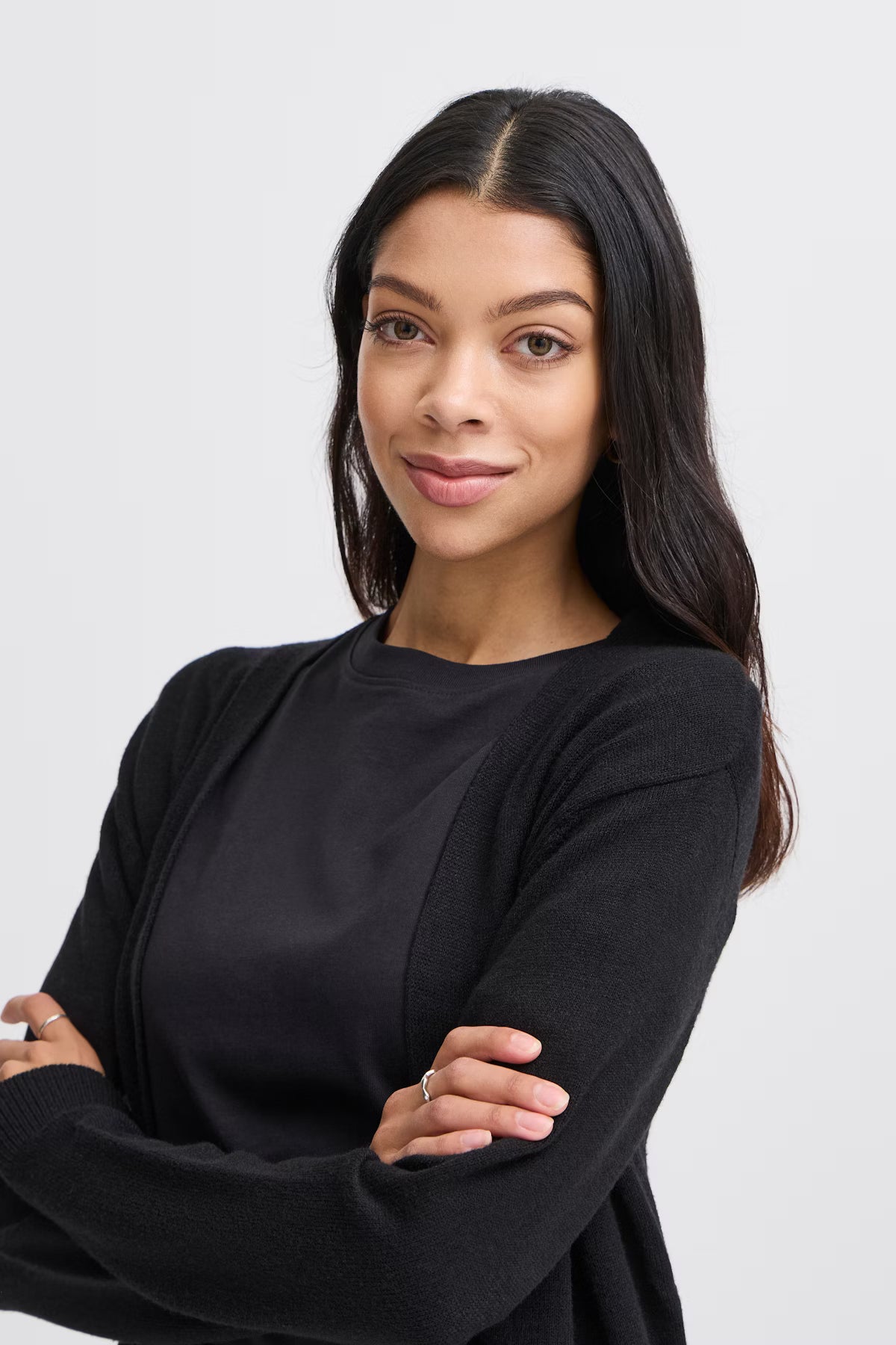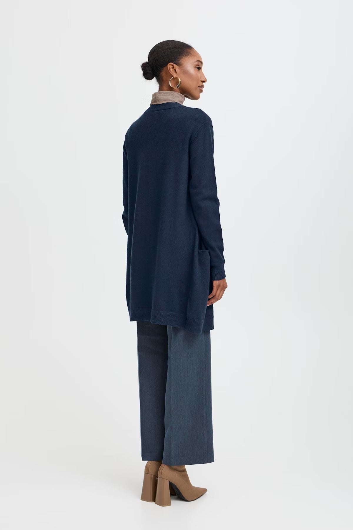 Open front cardigan for women offers a relaxed fit, classic V-neckline, and long sleeves. Features functional pockets and ribbed cuffs for everyday comfort and versatile layering throughout th