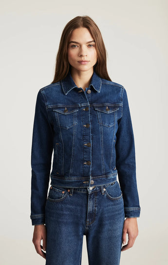 Cecilia offers a tailored take on the classic denim jacket. With a cropped length that ends just above the waist, the versatile fit is ideal for layering through the seasons. This style features a classic dark wash with whiskering and a perfectly worn-in finish.