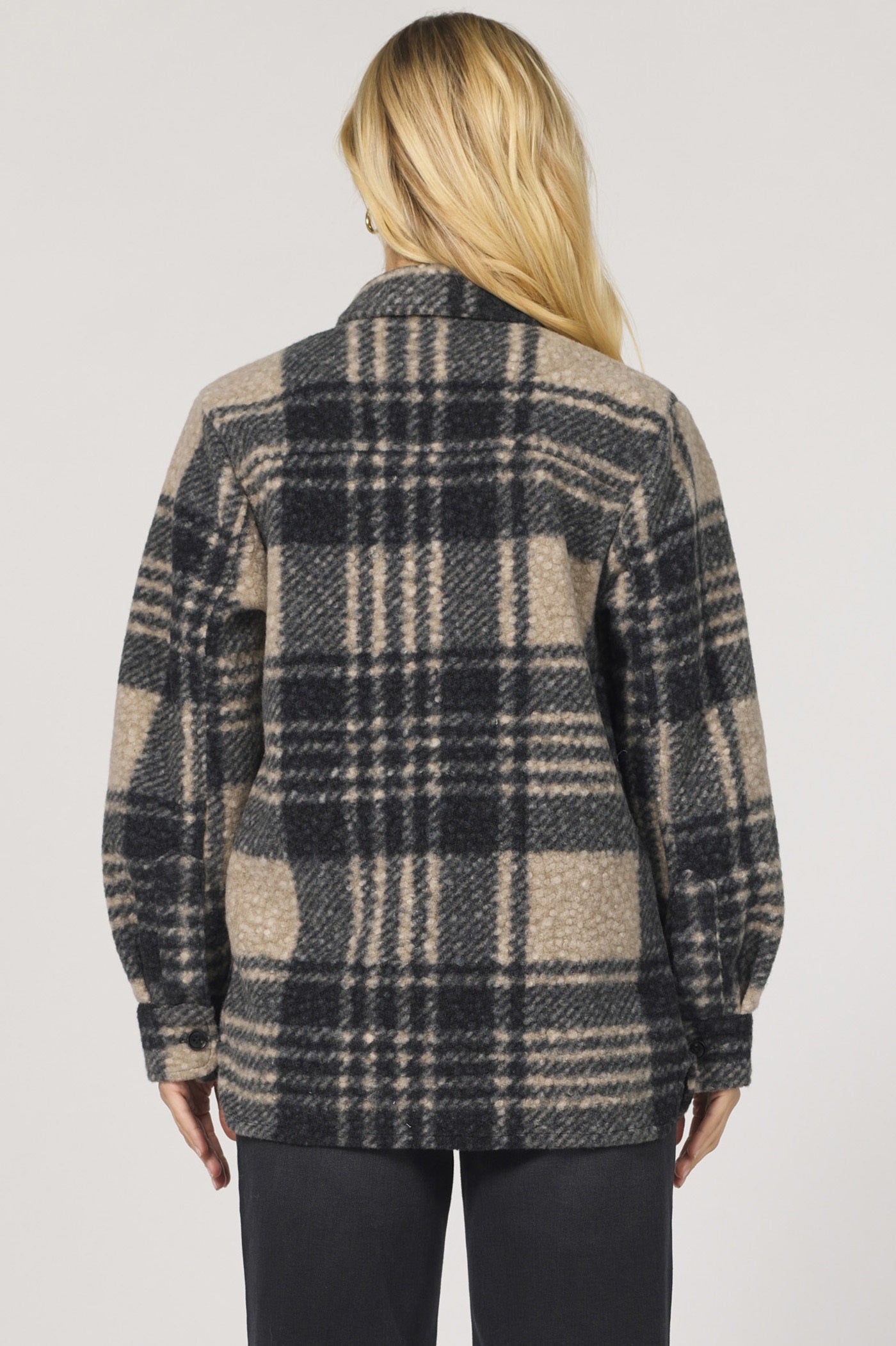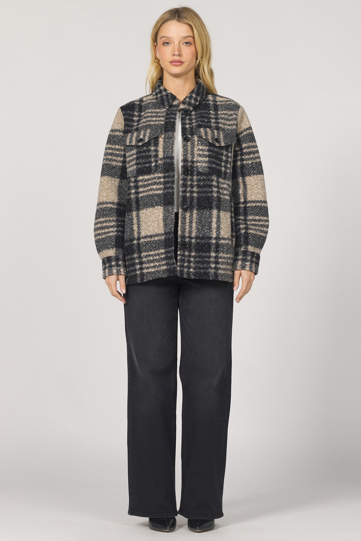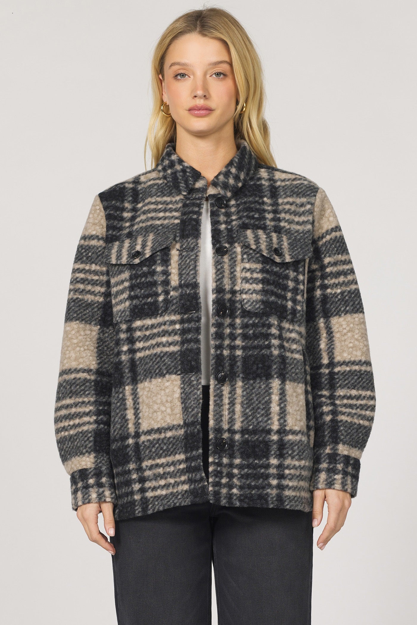 Adorned with a delightful plaid design, this jacket offers a cozy yet polished look for any occasion.