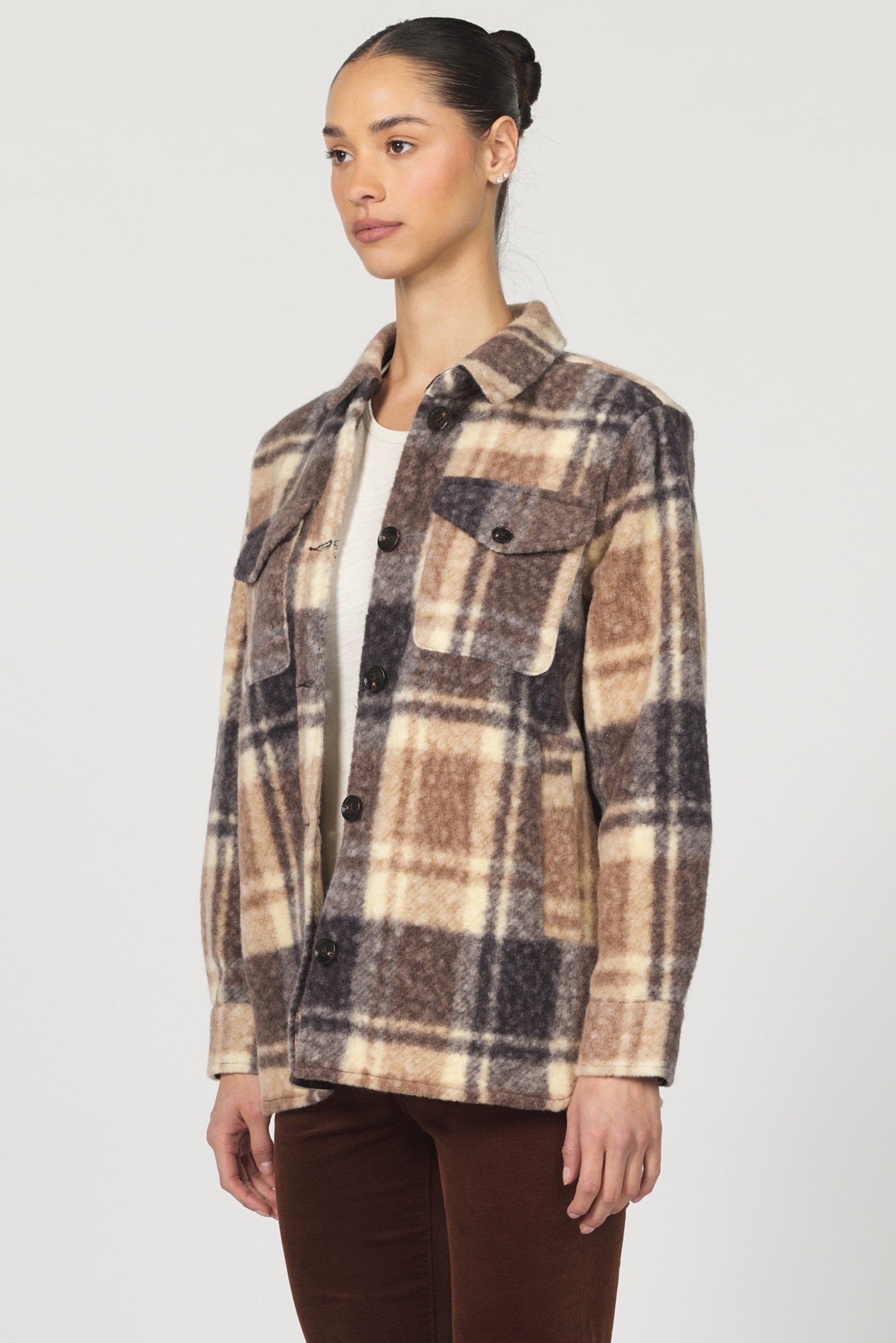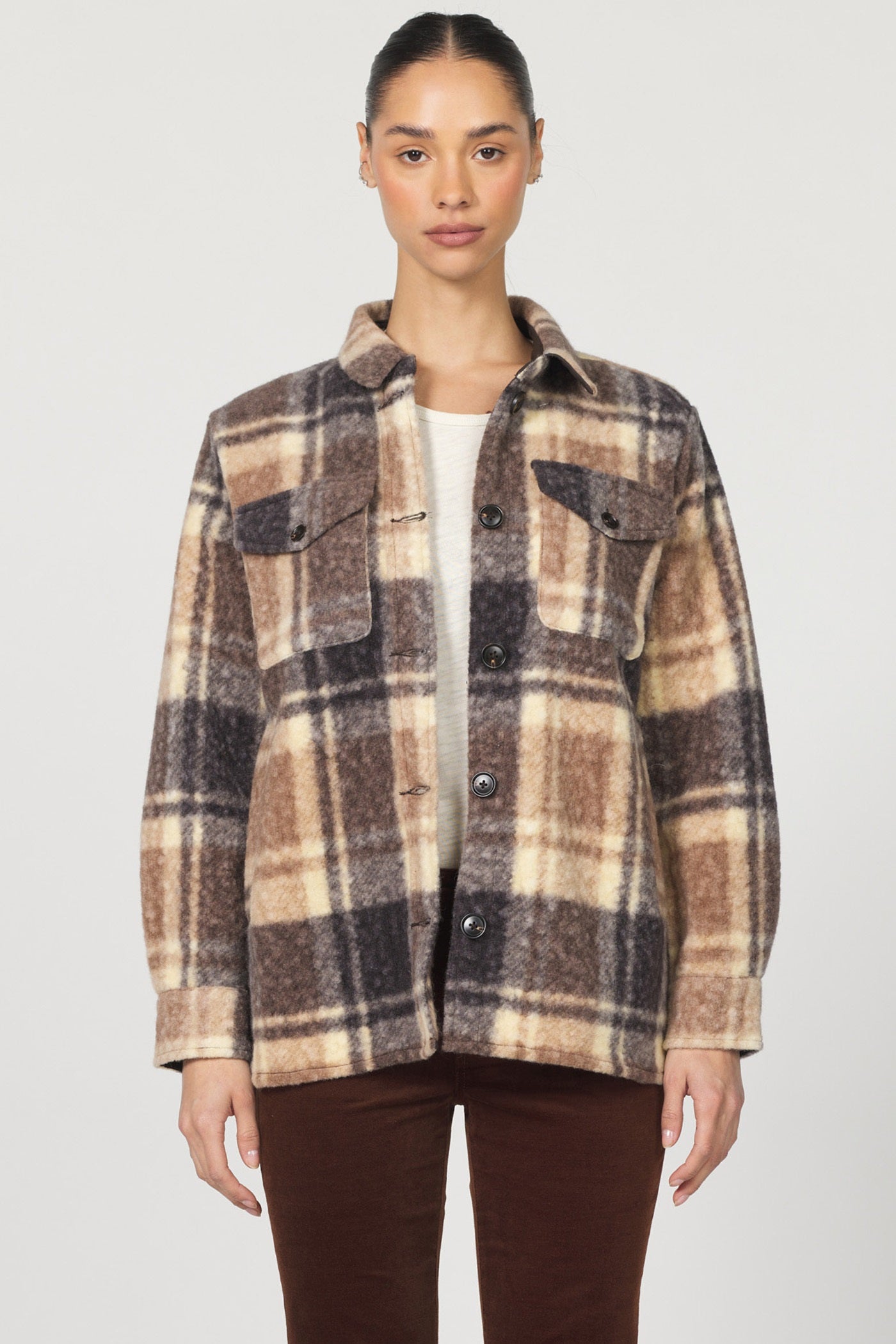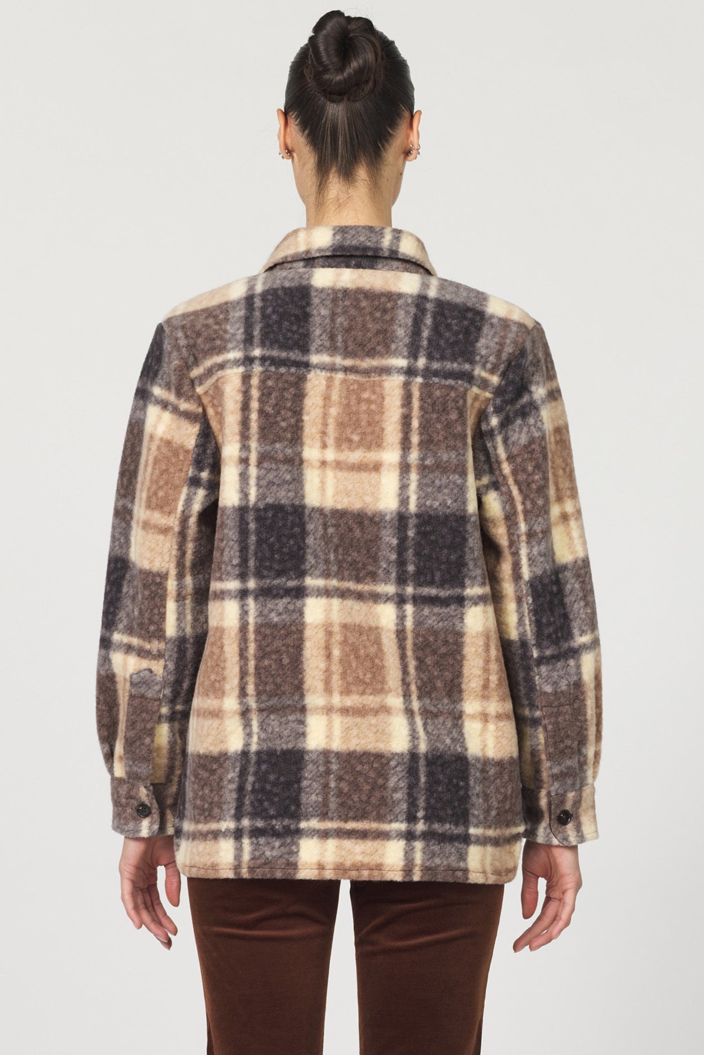 Adorned with a delightful plaid design, this jacket offers a cozy yet polished look for any occasion.