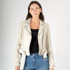 Elevate your wardrobe with the Maryn Leather Jacket. This off-white cropped jacket boasts stunning stud detailing on the front and back, adding a touch of edginess to any outfit. The belted waist ensures a flattering fit, making this jacket a showstopping addition to your collection