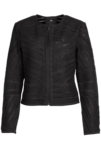 A sleek and lightweight design made from soft nubuck leather. Its unique entwined mesh pattern adds a touch of texture and style. Perfect for any occasion, this jacket combines fashion and function effortlessly.