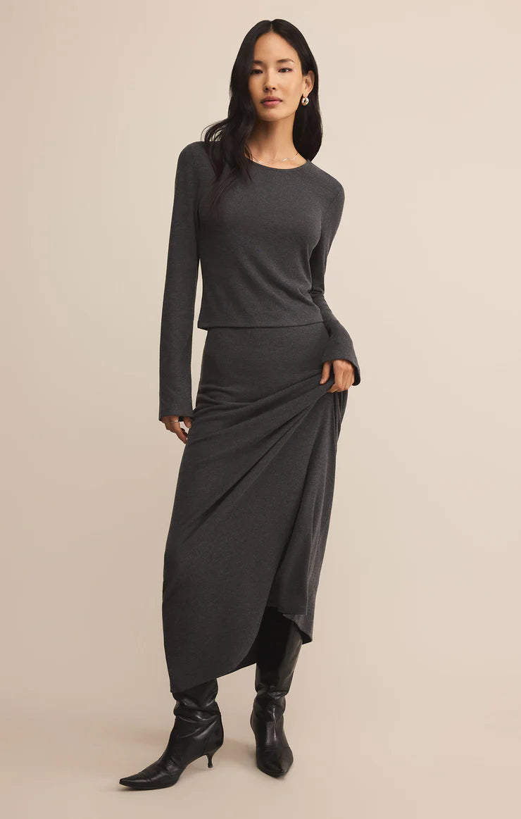 Soft, stretchy, and fitted just right, this long sleeve brings easy shape with a fluted sleeve and flattering cropped length. Whether layered up or worn on its own, it’s made for feeling cozy while looking pulled together.