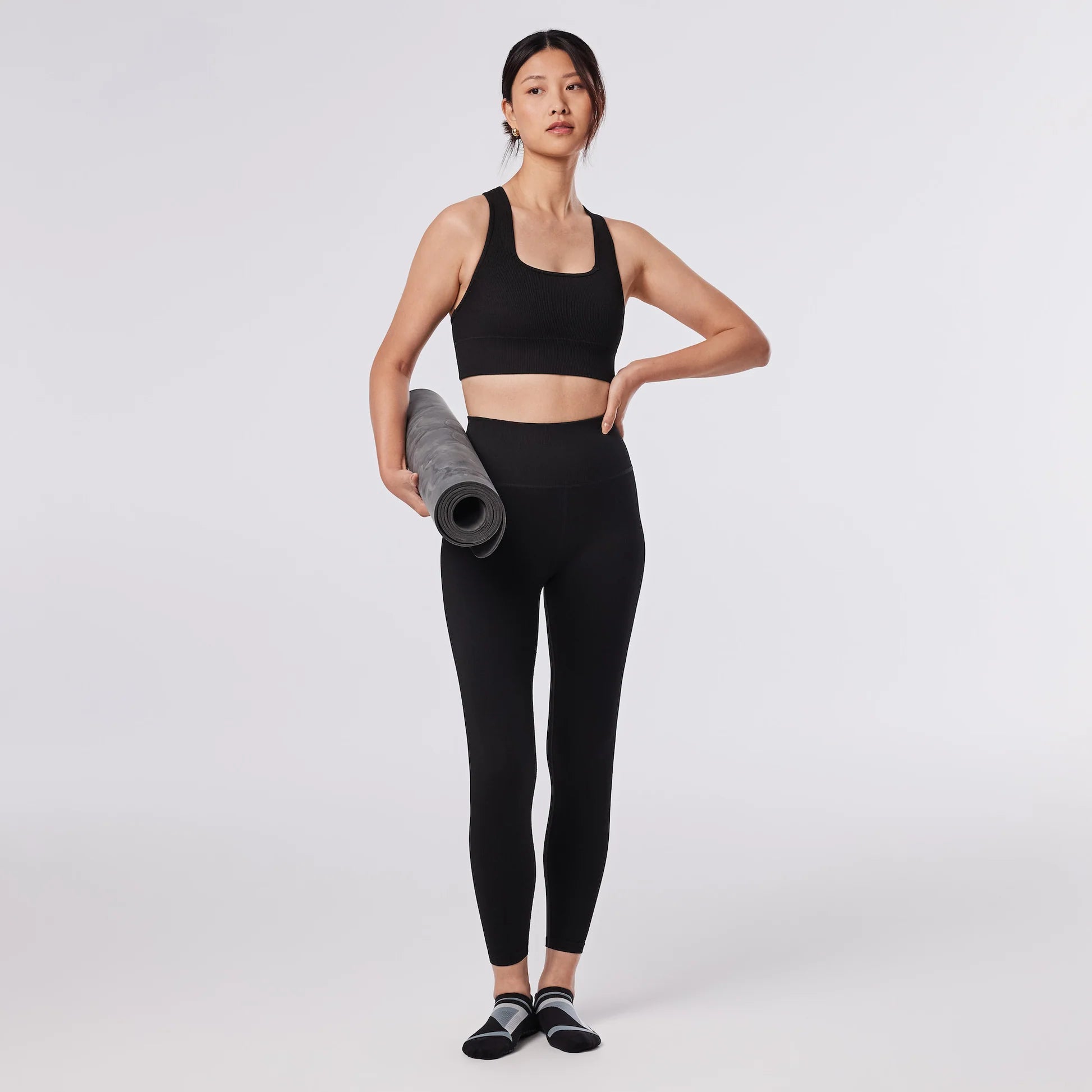Your low-impact bestie has arrived - the Seamless Racerback Rib Bra. Featuring wide supportive straps, a built-in shelf bra, and sweat-wicking performance, this mid-length style keeps you moving with total freedom.