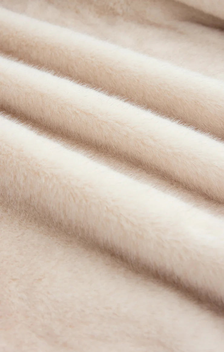 This faux fur jacket balances cozy comfort with just the right amount of structure. Fully lined and finished with side seam pockets, it’s made for chilly days and styled-up moments.