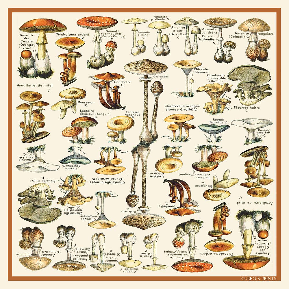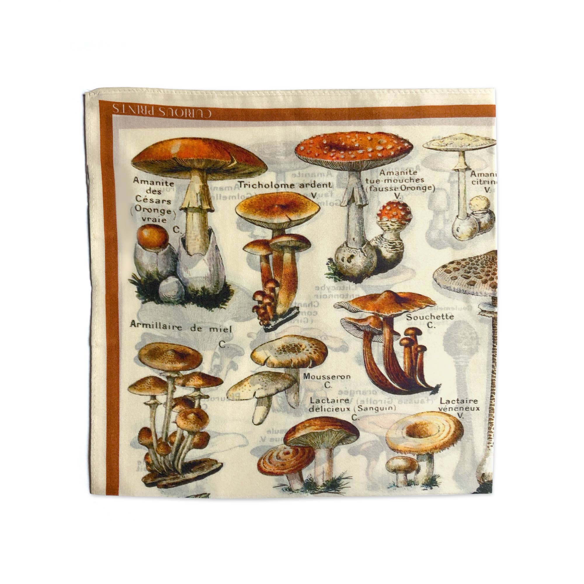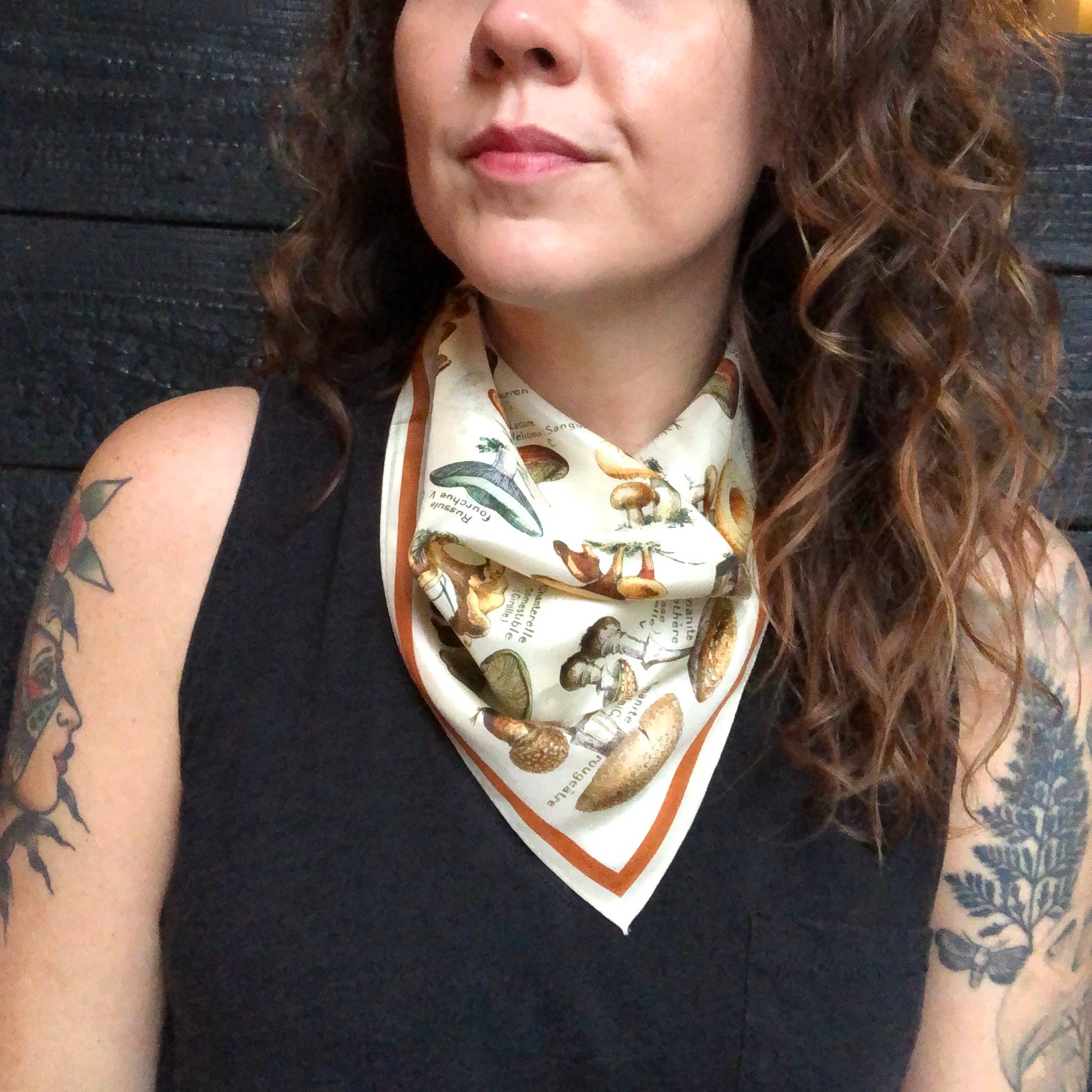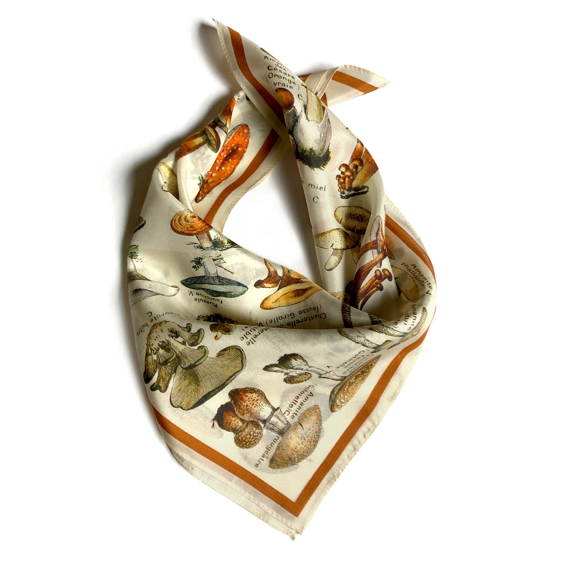 Our silk scarves are designed using vintage botanical illustrations. The custom pattern is printed on 100% silk habotai fabric and finished into a lovely small square scarf by hand. These scarves are light and airy and the special print process allows the print to be seen through both sides of the scarf.