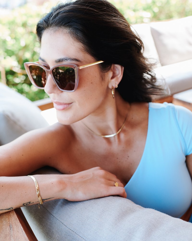 Calling all sun-lovers in search of shades that flatter wider face shapes! Aloha Fox is the pair you’ve been waiting for. This chic metal set combines the cat-eye trend with the full coverage of an oversized frame and Polarized lenses.