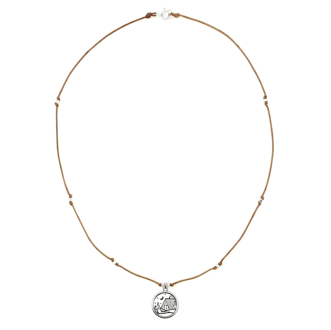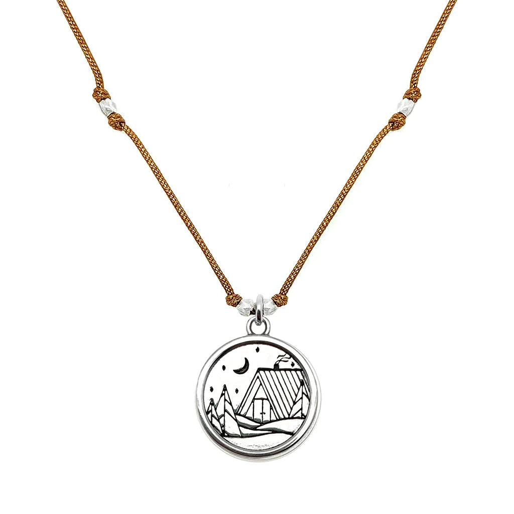 Escape to an Alpine Retreat with this cozy necklace. The sterling silver medallion with etched lines and symbolic motif is a reminder of favorite pastimes, snow packed fun, and warm nights around the fireplace. The durable, water-friendly nylon cord and sparkling faceted accent beads enhance your alpine adventures.