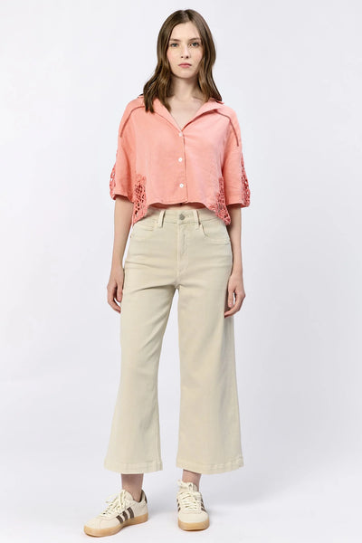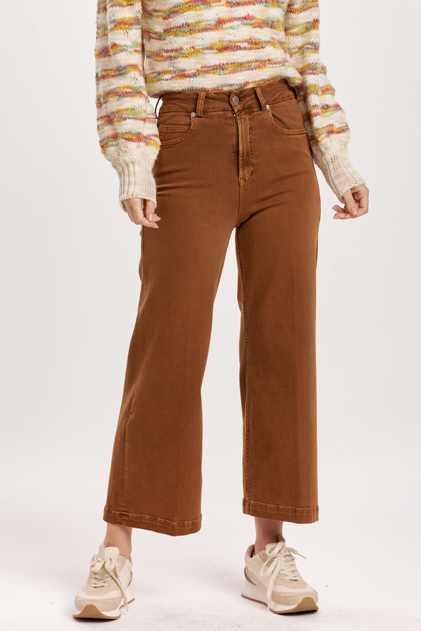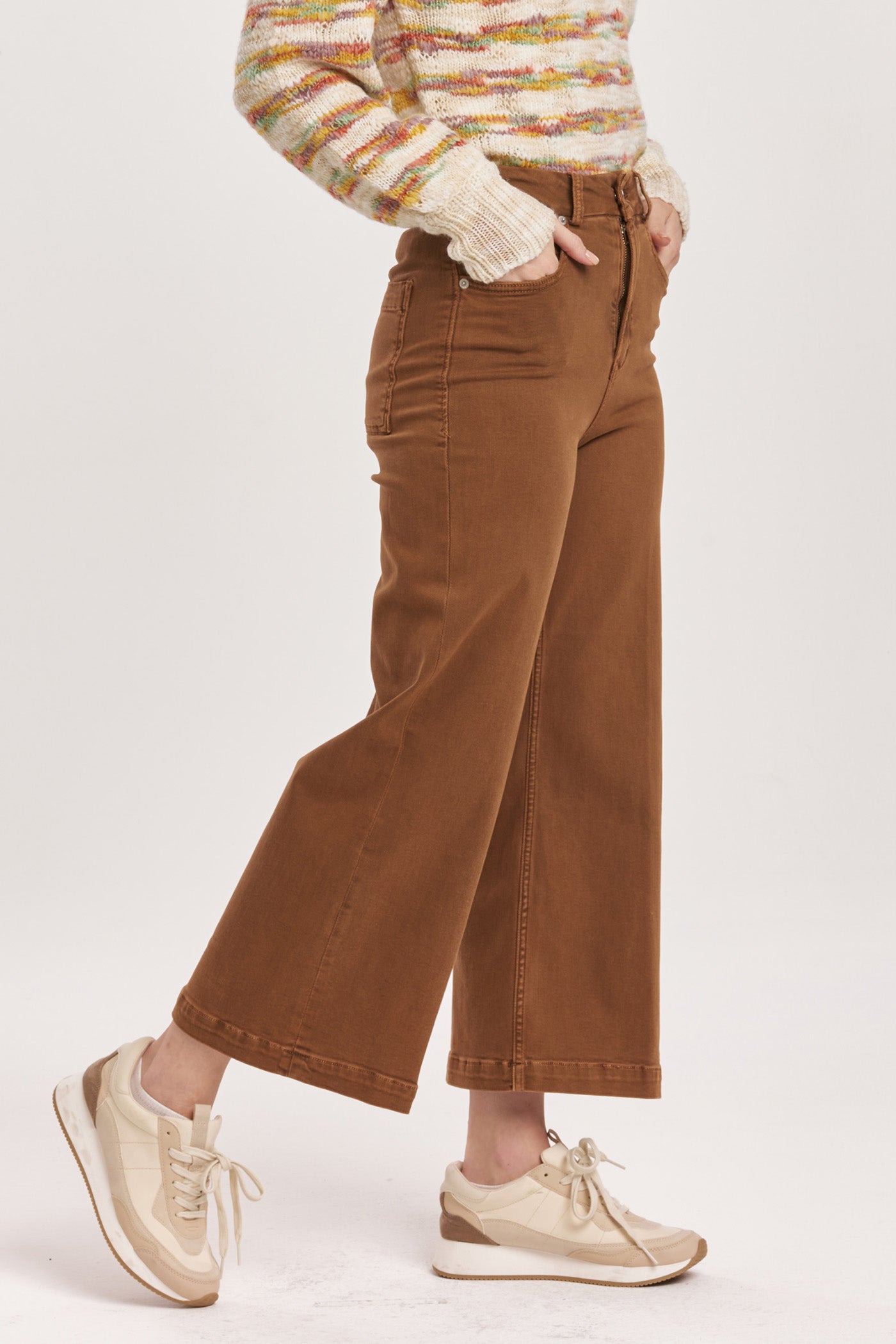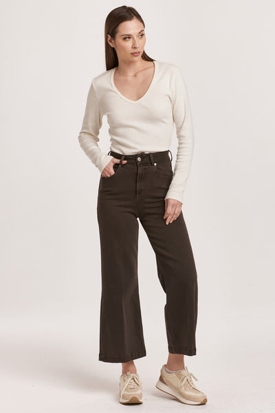 Audrey wide leg jeans in railroad stripes sophistication. High rise with clean hem, designed for both style and comfort. Crafted from a blend stretch denim for versatility & utility, ensuring a chic silhouette for any occasion offering a tailored look, making them a staple in comfortable clothing while experiencing both elegance and ease.