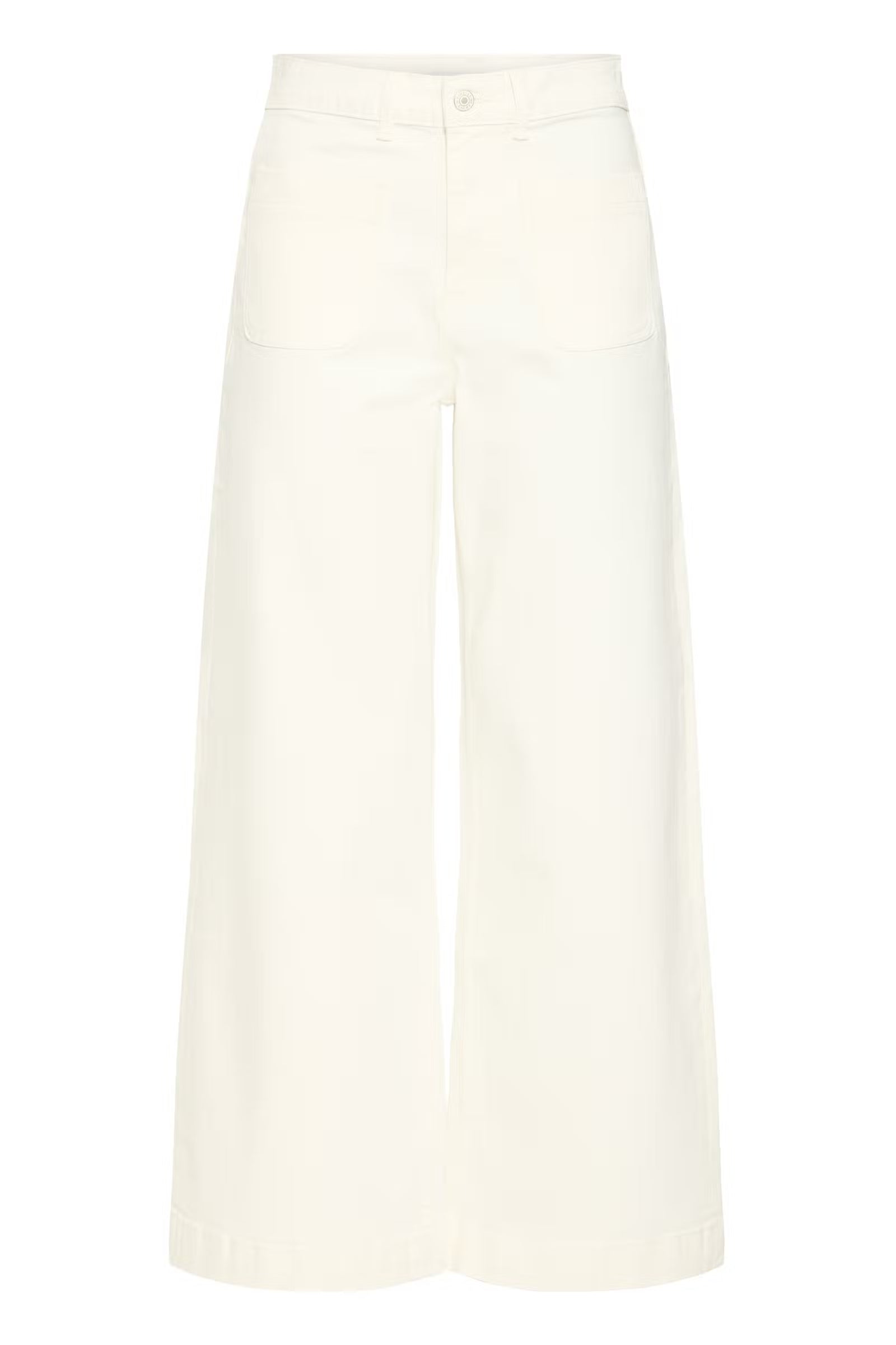 Wide leg jeans offer a high-rise fit with a straight silhouette and subtle texture. Visible front patch pockets add structure, while the long length creates an elongated look. Minimal detailing keeps the style clean and modern.