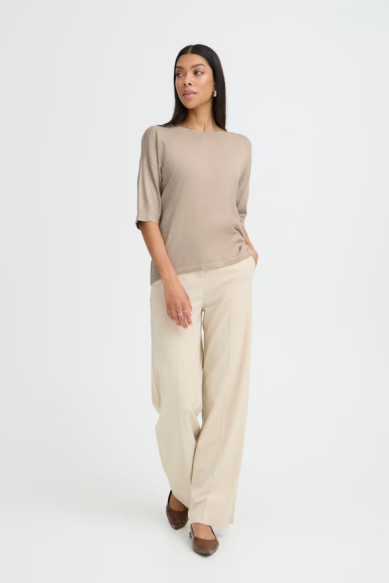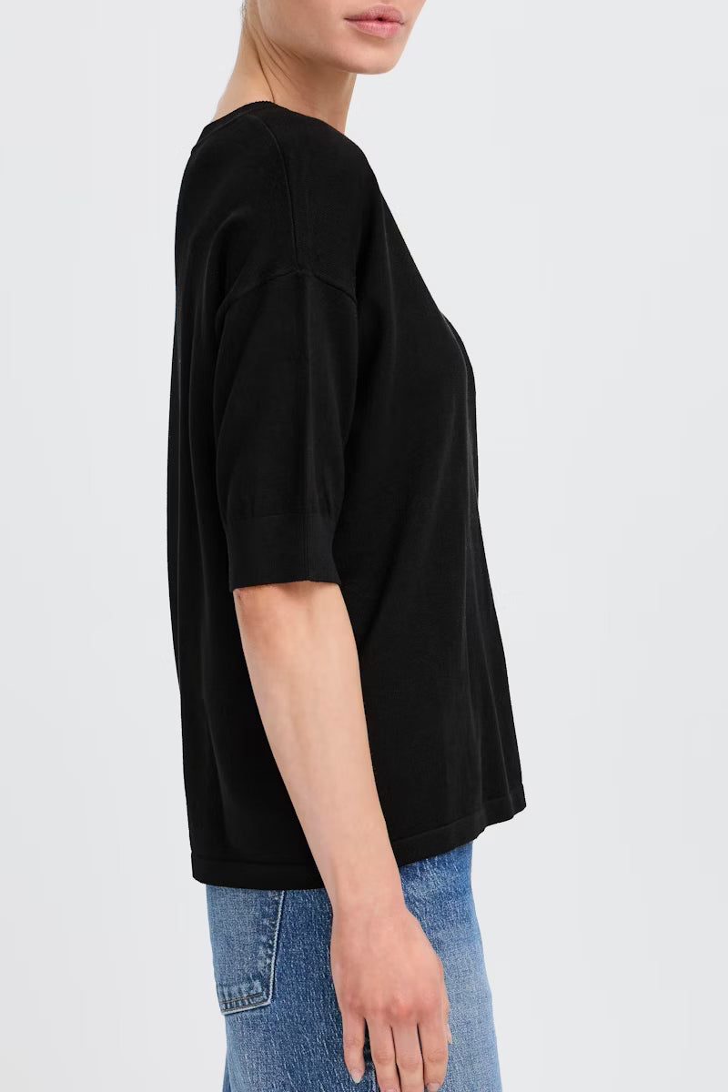 This fitted long sleeve top showcases a sleek silhouette with a classic crew neckline. The soft finish and smooth texture deliver streamlined style with clean hems and no visible detailing.