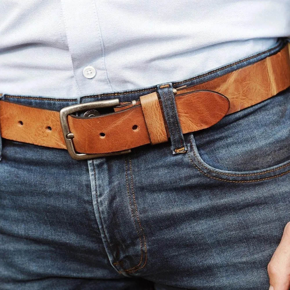 Wonderfully rugged is the best way to describe this quality leather belt for men. Wear it with your most comfortable denim or a nice pair of khakis. This casual leather belt for jeans is perfect for work and play. Available in black & three unique shades of brown.
