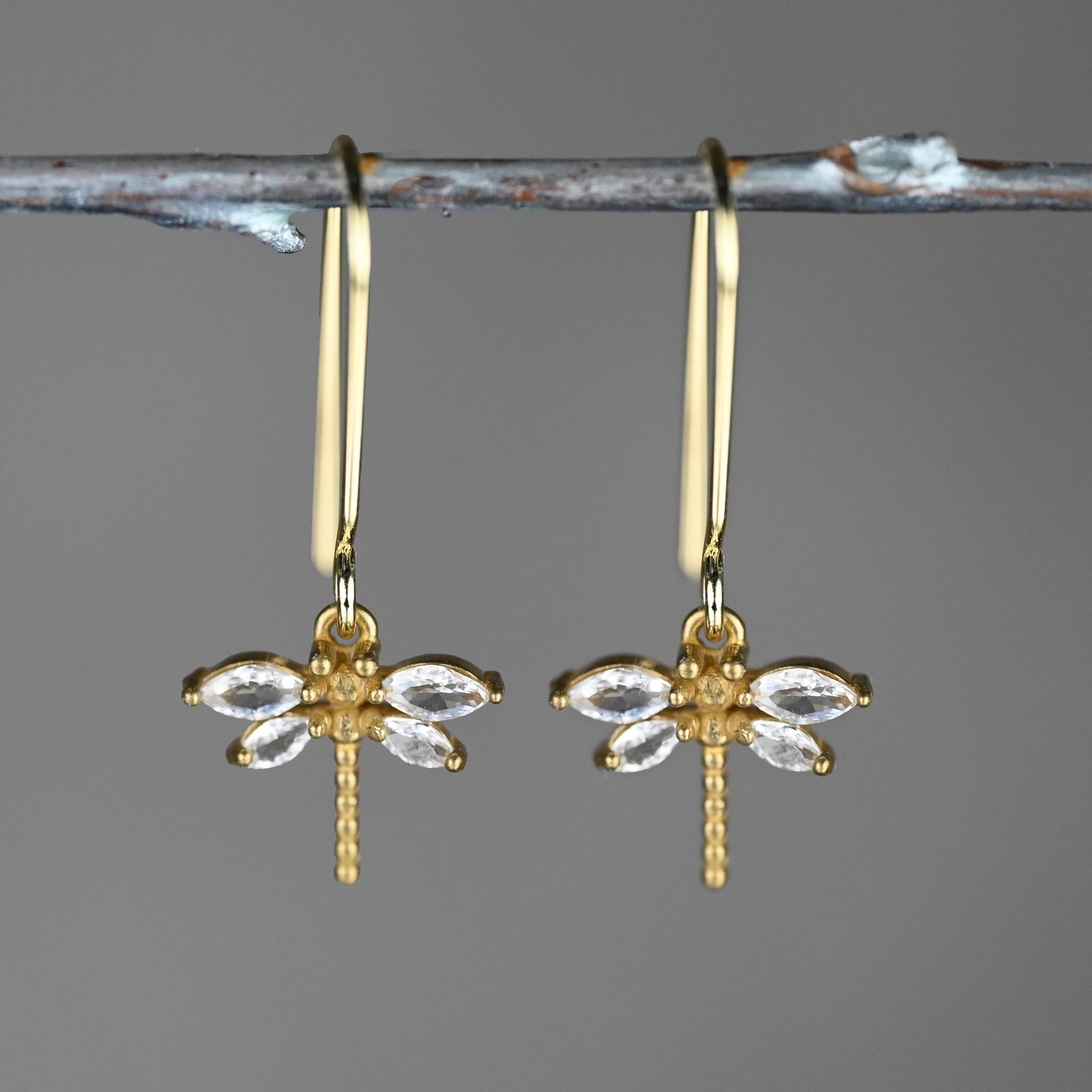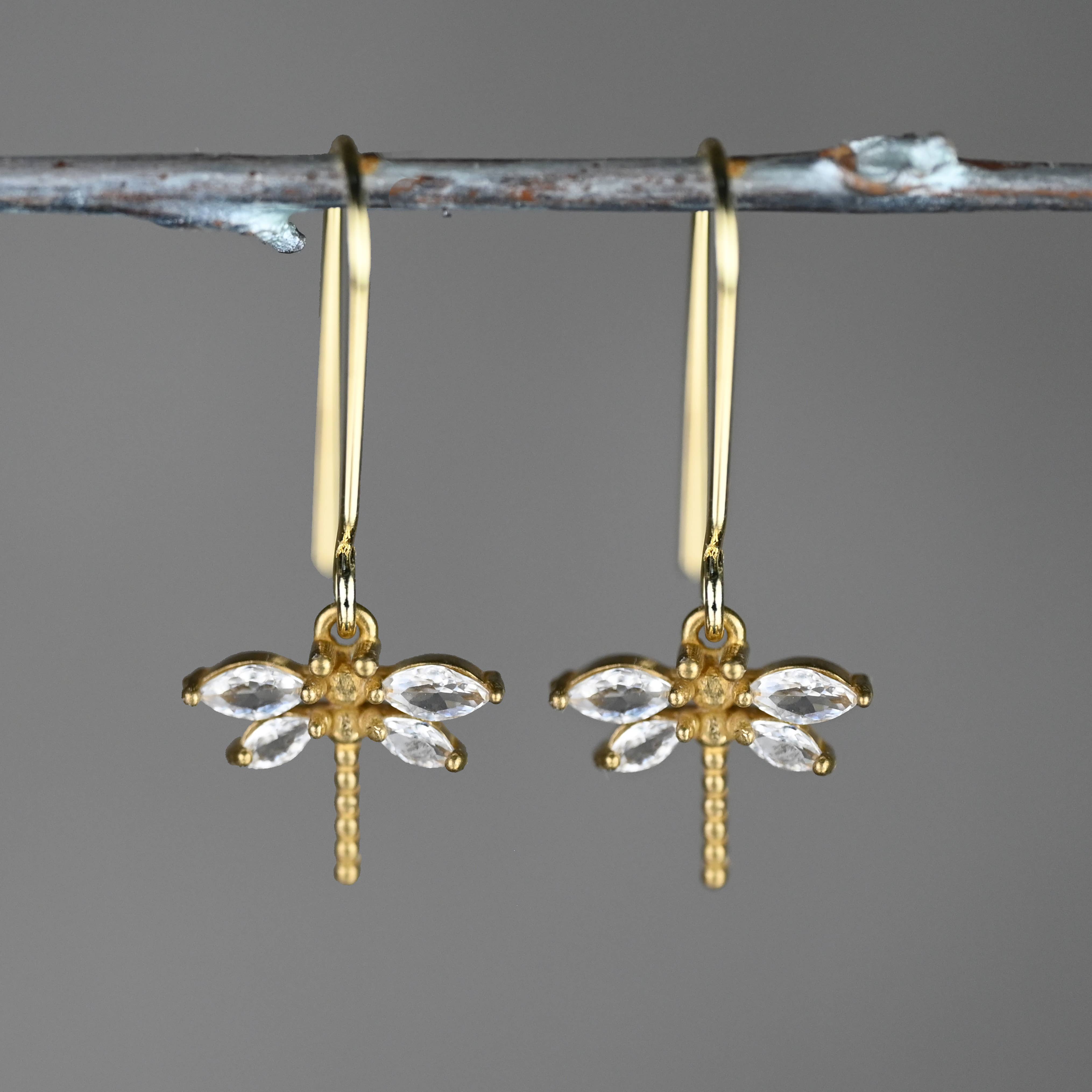 These are beautiful earrings that feature delicate brass vintage Dragonflies with tiny crystals. They are easy to wear everyday and fabulous.
