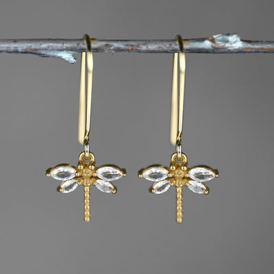 Delicate Vintage Deco Crystal Stone Dragonfly Earrings