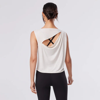 The Draped Back Tank reimagines performance wear. Featuring our structured TaviMove fabric and a stunning angular cowl back, this relaxed-fit piece combines luxurious drape with functional durability.