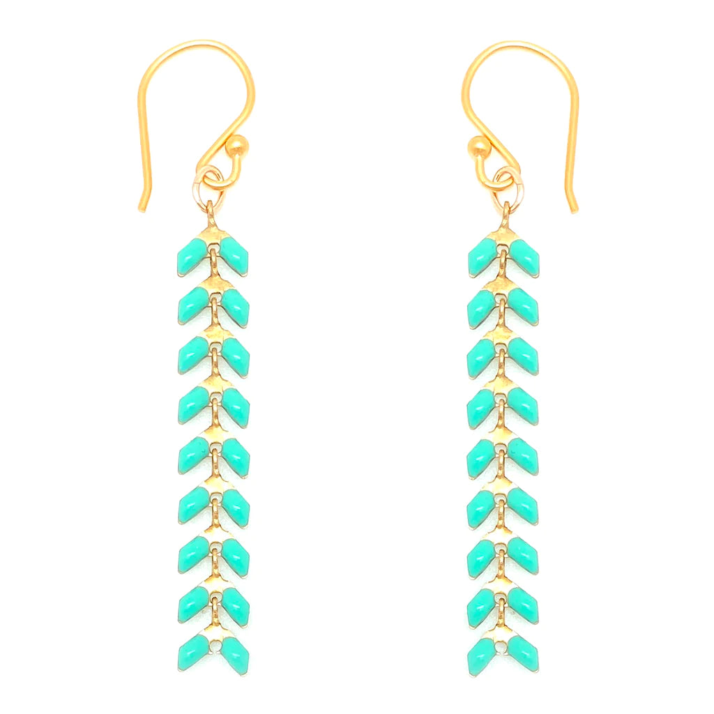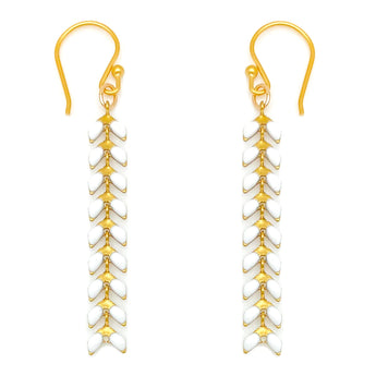 Say Hello to the newest in the Cascade Collection - the colorful enameled sibling! These Enameled Cascade Earrings are just as practical, sophisticated and completely beautiful and now even stronger with the addition of enamel coating. Feather-light, so comfortable, with a chevron shape that is modern and timeless. These earrings are low profile and so stylish that they'll take you from yoga practice to your dinner date with ease. Available in Aqua or White and in Medium Length. We hope you love this newest colorful addition as we do!