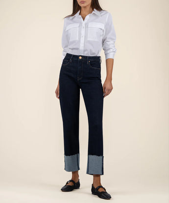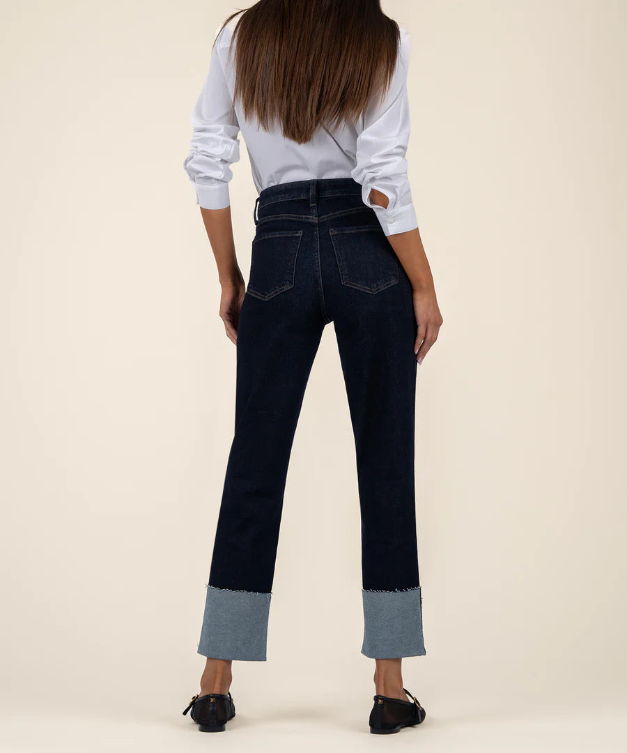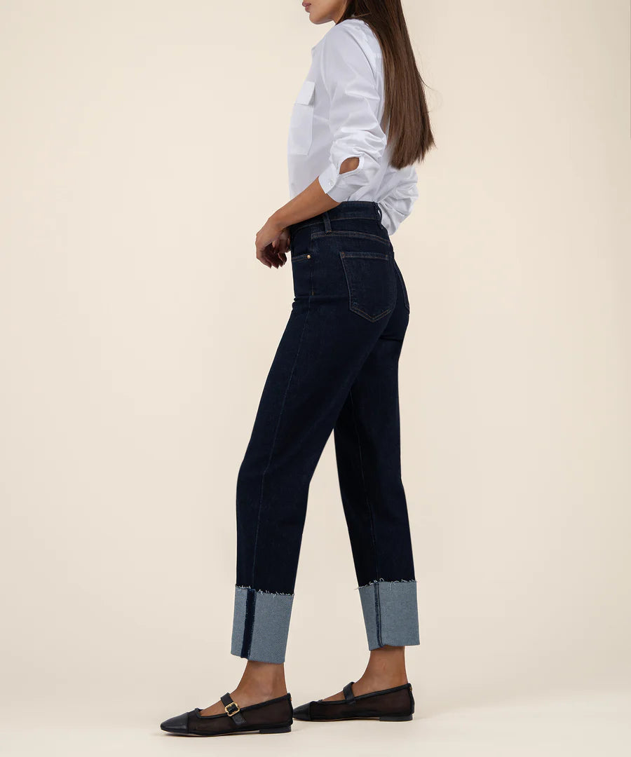 - Oversized cuffs with a aw hem make a statement on these loose-fitting, ankle-grazing straight-leg jeans cut from premium denim with our Fab Ab front pockets that smooth and add comfort.