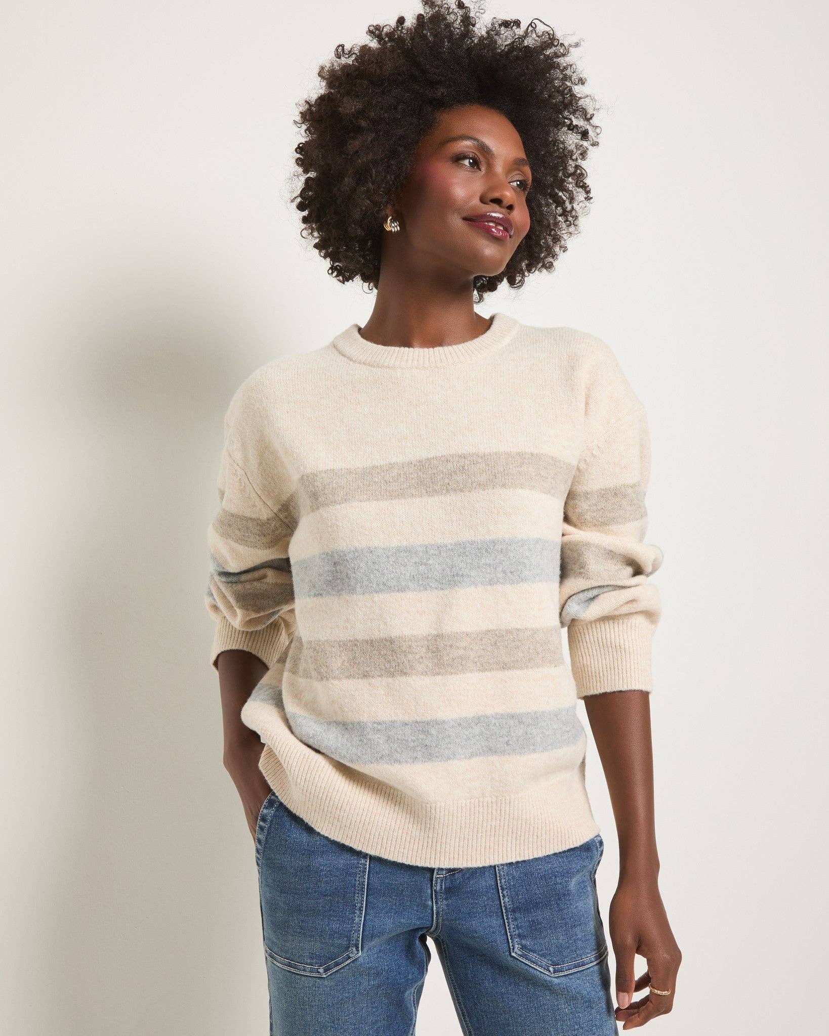 A laidback sweater with wide contrast stripes and a chill, vintage feel. Ribbed neckline, cuffs, and hem keep the shape, while the fit stays relaxed whether you’re working from home or wandering through the farmers market.