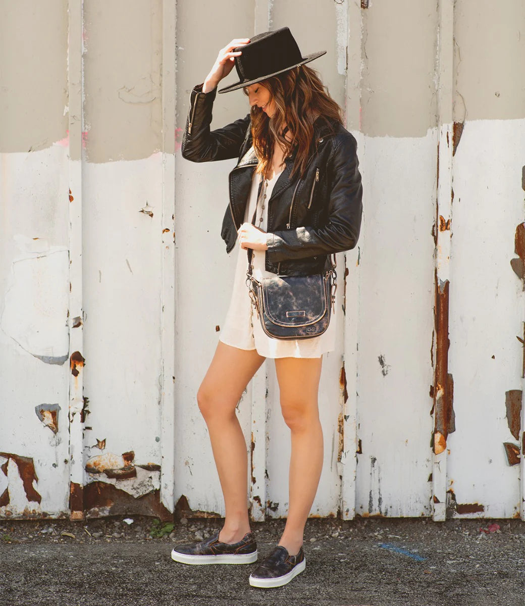 HERMIONE is a versatile slip-on women's sneaker that effortlessly complements any outfit. Designed with a super-cushioned insole that guarantees comfort during all-day adventures. Available in a range of artisan-handfinished colors, HERMIONE is the perfect blend of style and convenience for today's fashion-forward explorer.