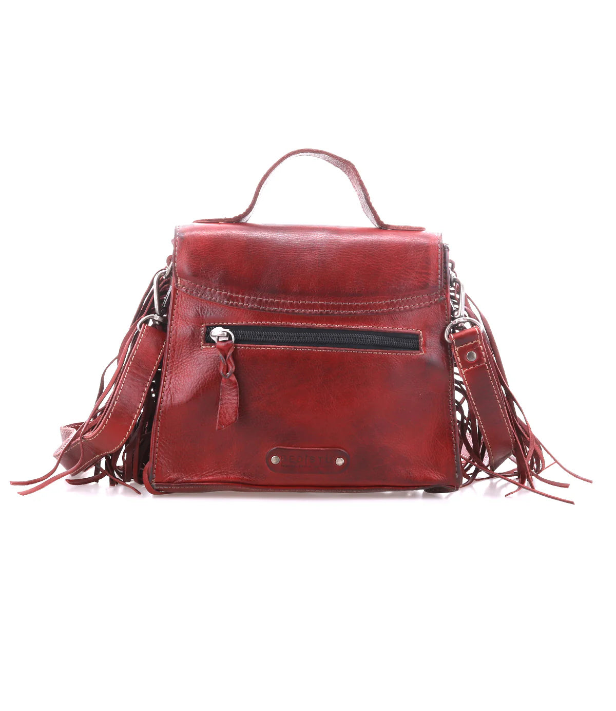 Hidden is a compact leather crossbody bag packed with fun fringe. It sits upright, has a small handle on top to hand carry, and also comes with an adjustable and removable crossbody strap. Add a touch of whimsy and flair with Hidden at your hip.