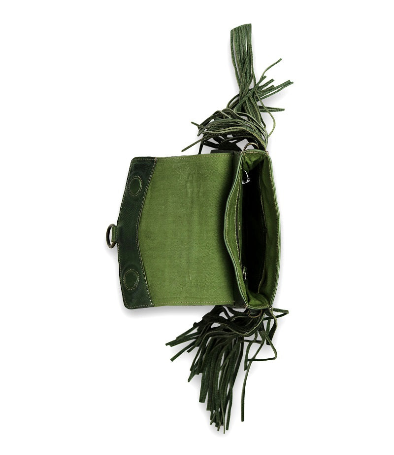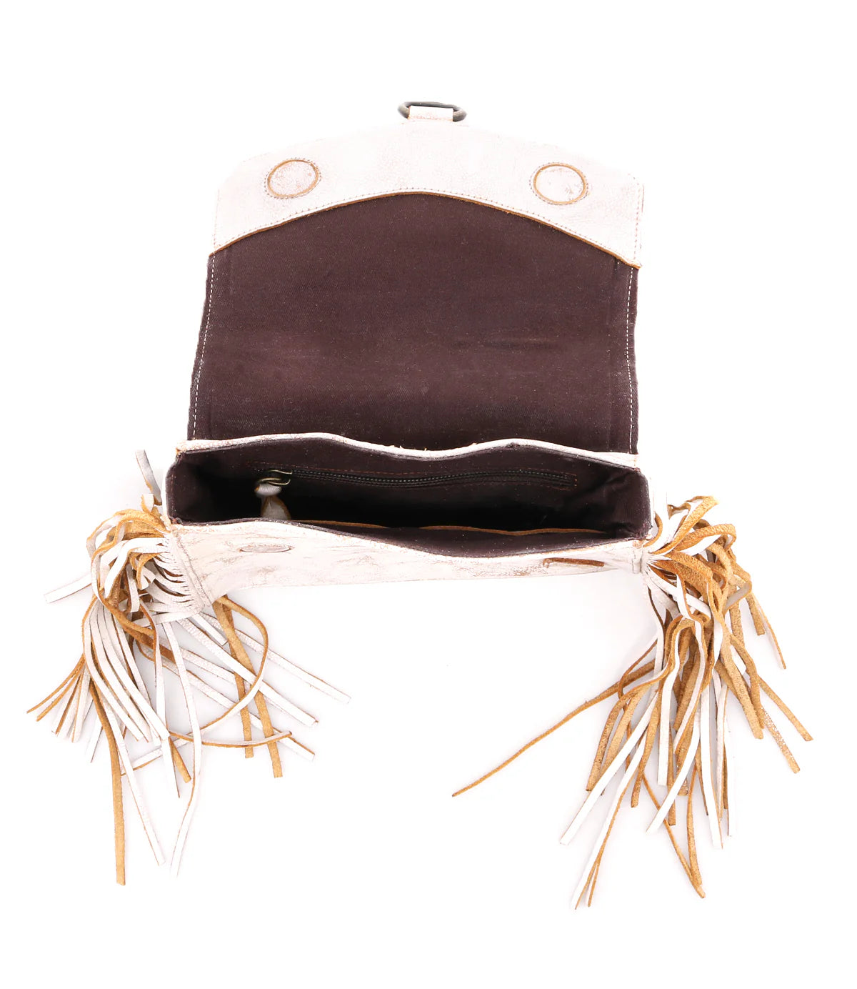 • Compact crossbody with adjustable and removable strap, fun fringe