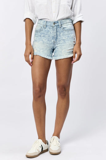 Ivy denim shorts is the unparalleled comfort and style Flora Blue wash. Crafted with Cotton and Viscose blend, these shorts provide a breathable fit perfect for your stylish looks. In mid rise with destructed fray hem features, they boast the sought-after details, making them an ideal choice for versatile outfits for any occasion.