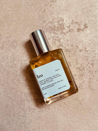 LEO PARFUM is a divine fragrance specifically curated for the natural born leader of the Zodiac, Leo. It is well known that Leos have personalities that light-up the room and thrive off of being the center of attention. This sensual aroma will have all eyes the Queen of the Jungle as she walks in the room, just as she likes it. SACRED PRACTICE Dab on wrists, behind the ears, and on erogenous zones. INGREDIENTS Jojoba oil, cedar wood oil, lotus & tulip oil blend, lemon oil, mandarin oil, basil sweet oil, and cinnamon oil
