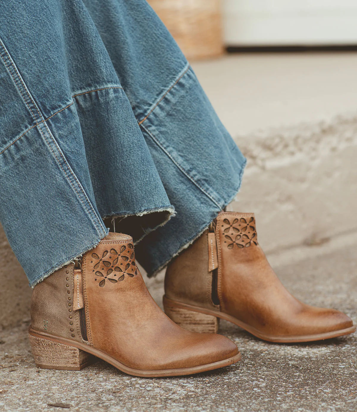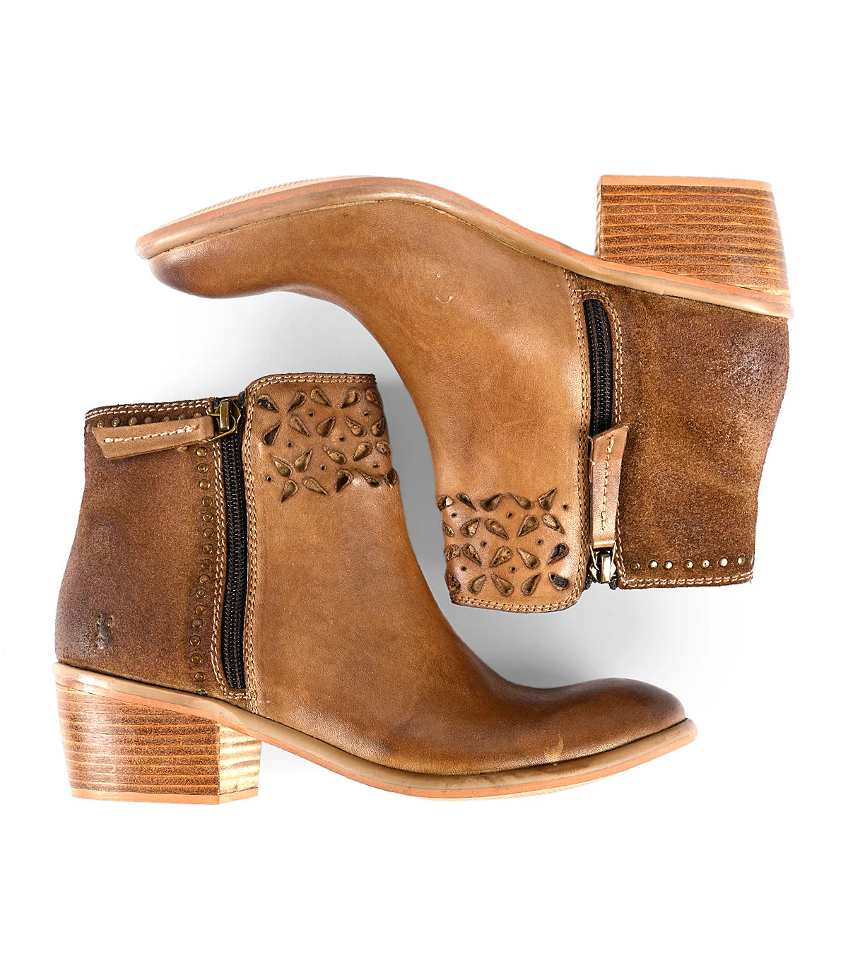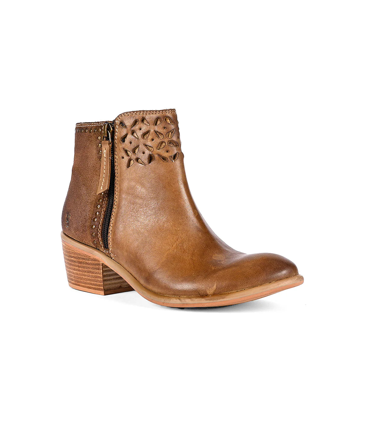 Showcase your uniqueness with Liz Cutout. These boots are crafted with mixed materials for a distinctive and eye-catching look. The intricate cutout petal design on the upper, combined with gold rivet details on the heels, adds a touch of elegance. These subtle yet striking details enhance the overall aesthetic, making these boots truly exceptional.