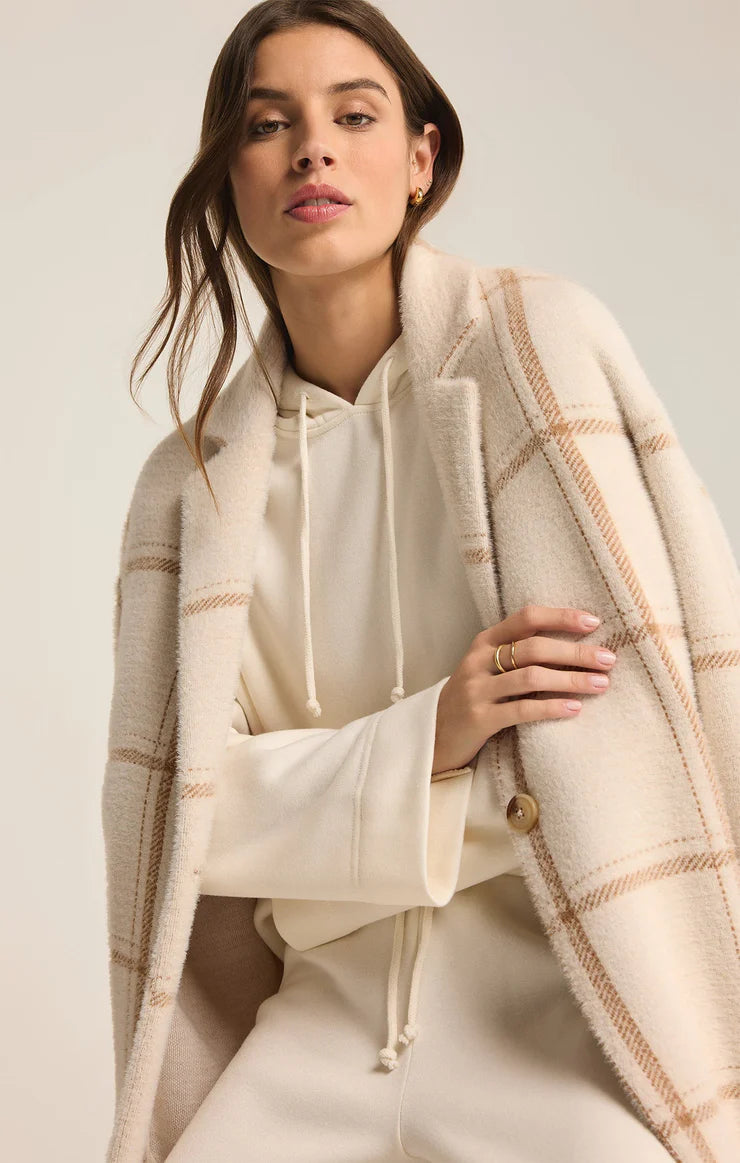 Wrap yourself in the warmth of this cozy coat, crafted from a heavy sweater knit fabric and designed with a notched lapel and front button closure for effortless wear. This stylish piece effortlessly elevates any ensemble with its sophisticated charm.