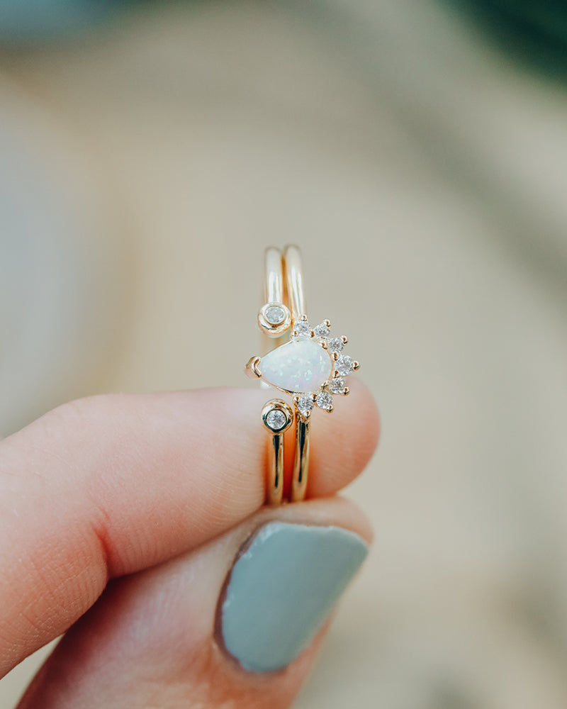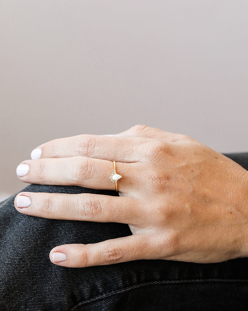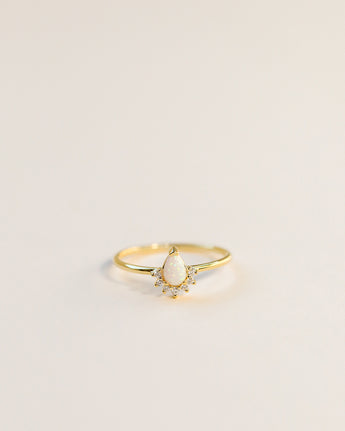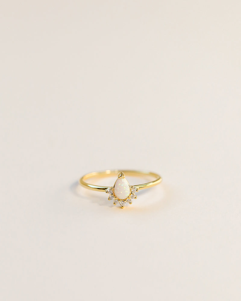 Our White Opal ring, adorned with petite teardrop CZ's, inspires creativity and happiness.