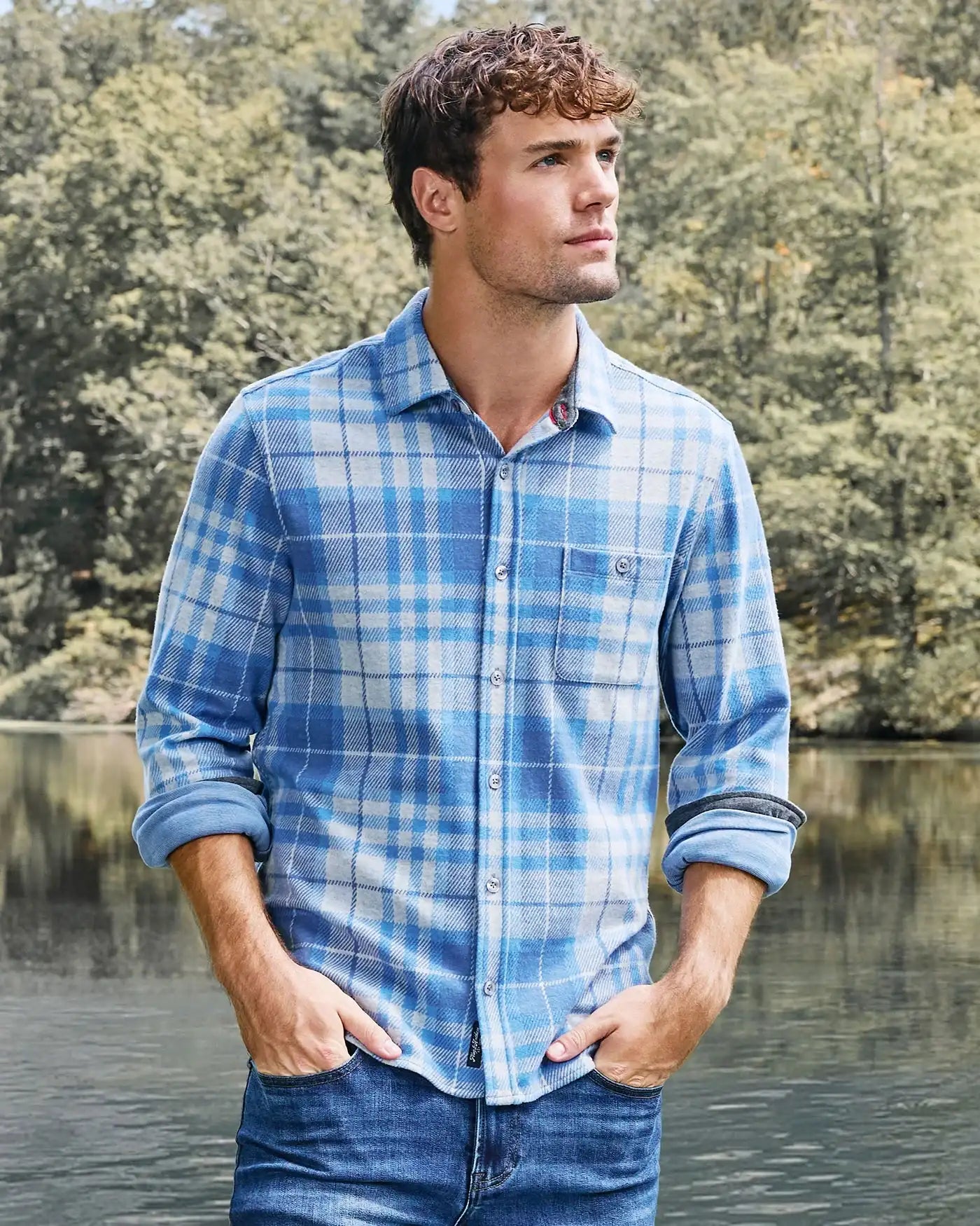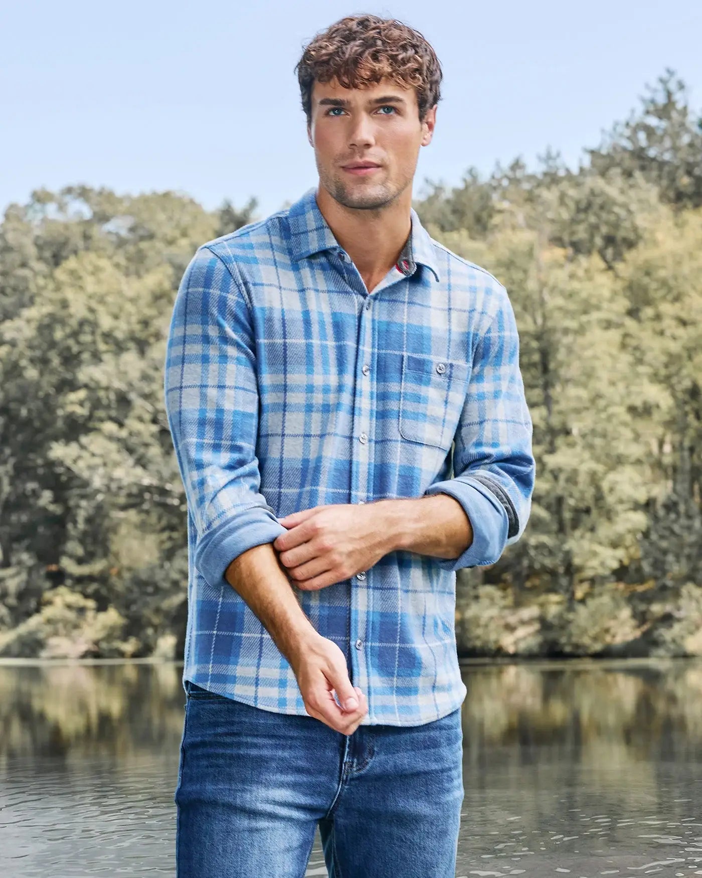 With a blend of extremely soft and stretchy knit performance fabric, you’ll find yourself reaching for this fall favorite all season long. Layer over your favorite tees, or on its own– this endlessly versatile flannel can be worn anytime, anywhere. Contrast fabric inside collar stand, back yoke, front placket, and sleeve cuffs. Single front chest pocket; button closures. Tailored athletic fit.