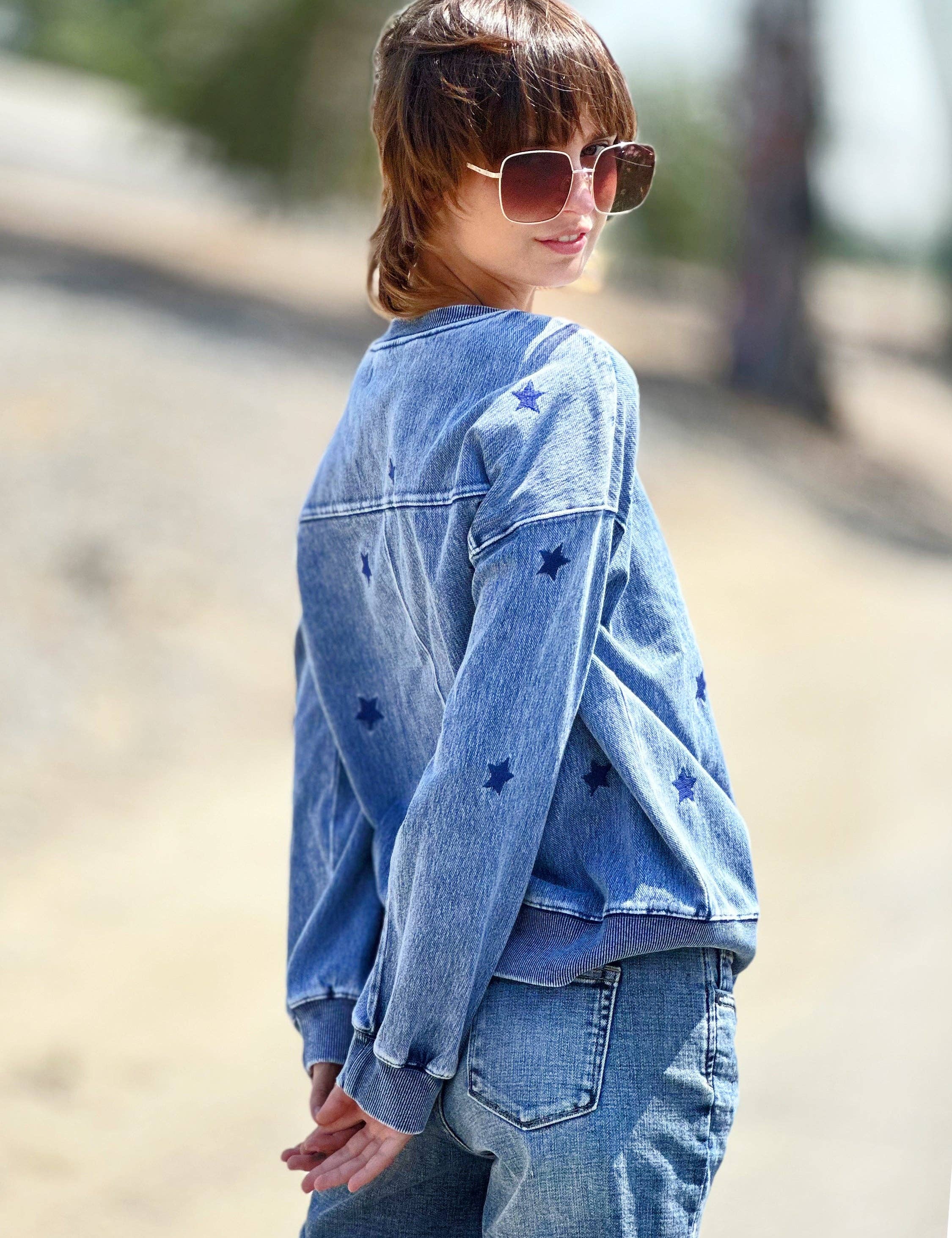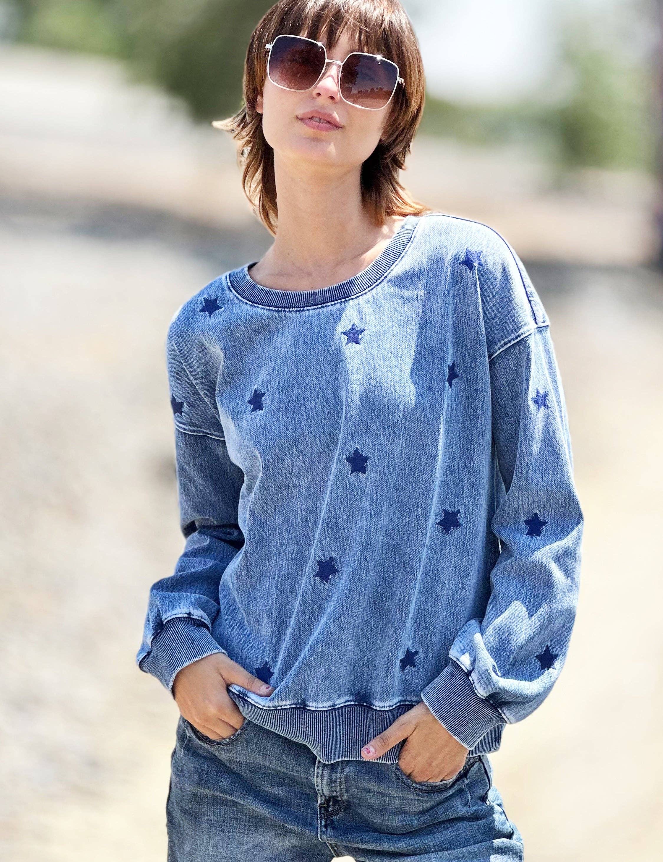 This ultra-soft, star-embroidered denim sweatshirt was made for super casual days.