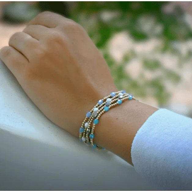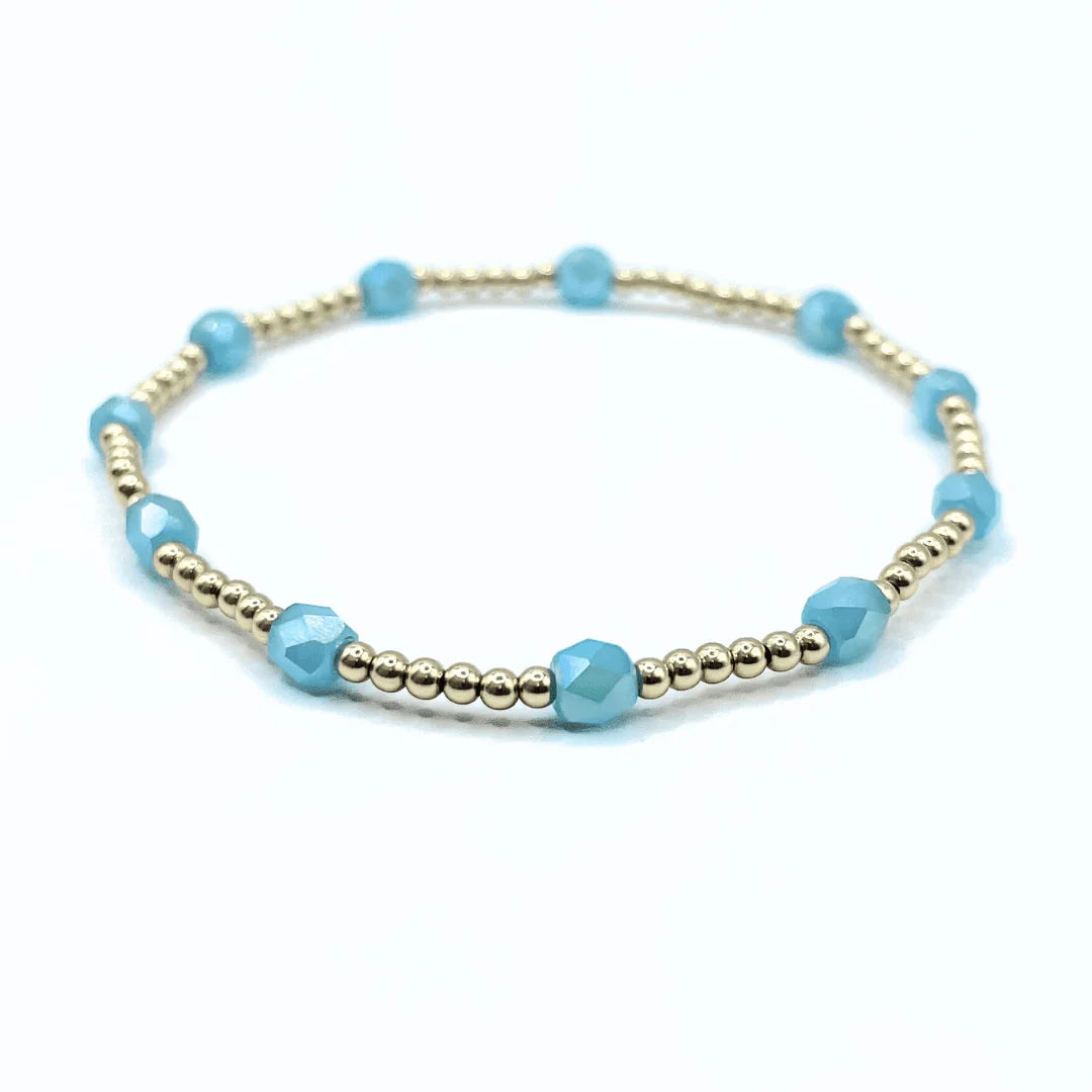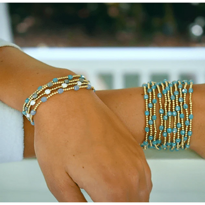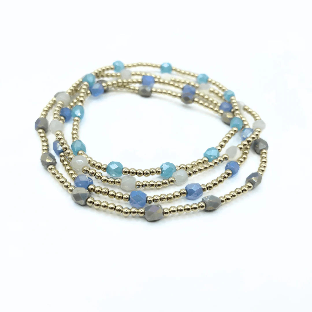 Vibrant yet soothing...like the waters of Key West. Our new collection features our long loved gold filled beads with colored glass beads. Made for stacking, why pick just one color? 14k gold-filled with glass cut beads around. Part of our erin gray waterproof bracelet collection!