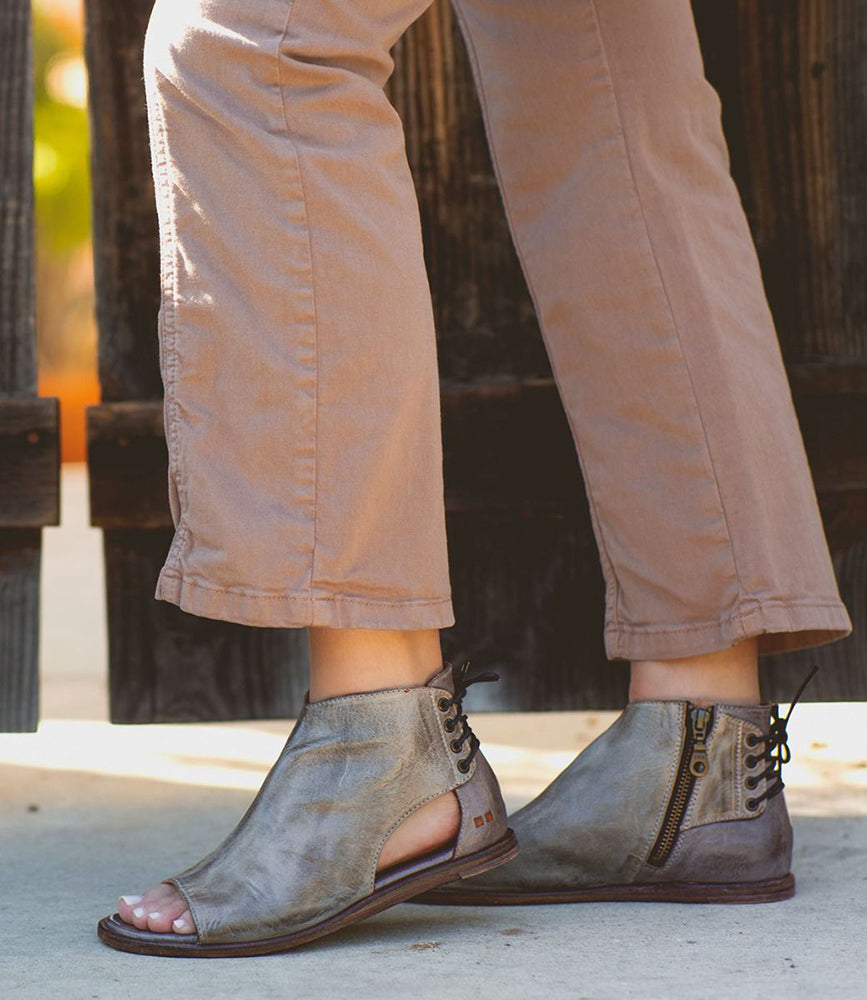 - Two toned leather sandal with inside zip